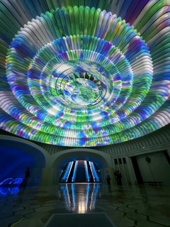 途中に「MOA美術館」へ立ち寄ったのですが、ホールの天井に色とりどりの光が万華鏡のように回転しながら映しだされ幻想的な空間でした。