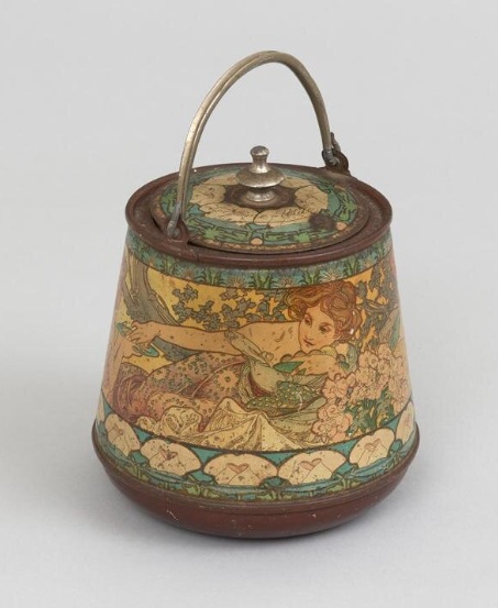 ミュシャが印刷されたビスケット缶だそうです。