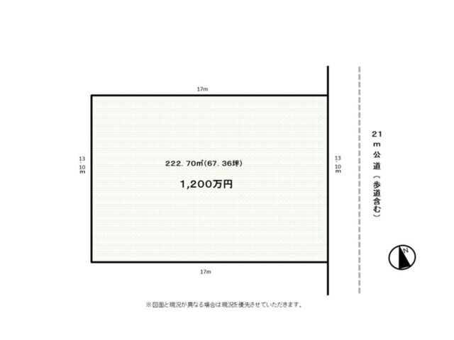 | 現況 | 更地 | 接道 | 東側21m公道(歩道含む) |
